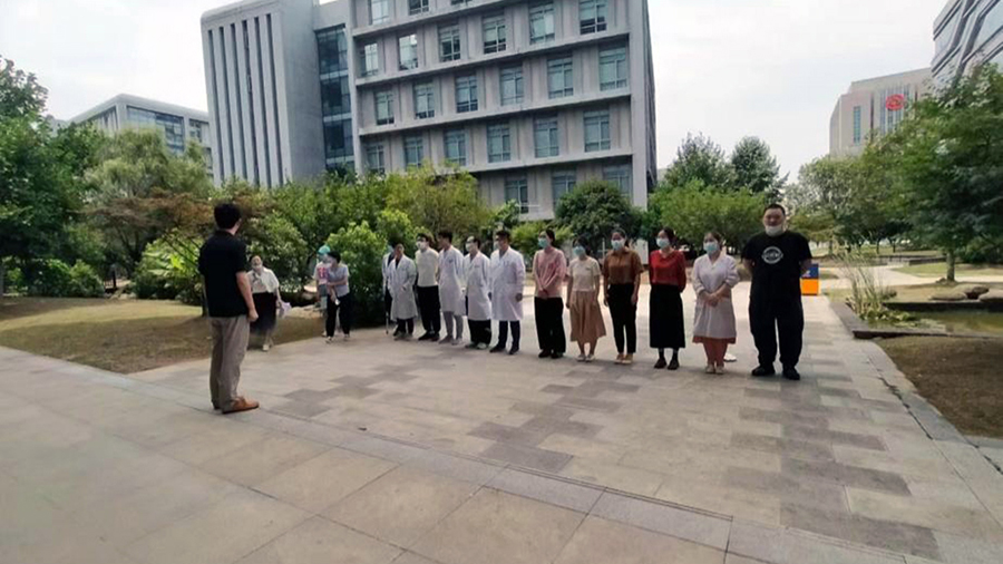 安全員陳海華組織大家開(kāi)展應(yīng)急演練。上午10點(diǎn)實(shí)驗(yàn)人員報(bào)告:“高效液相色譜儀著火”,搶險(xiǎn)救援組立刻拿滅火器滅火,警戒疏散組組織人員按照逃生路線(xiàn)進(jìn)行疏散,迅速有序地進(jìn)行撤離。