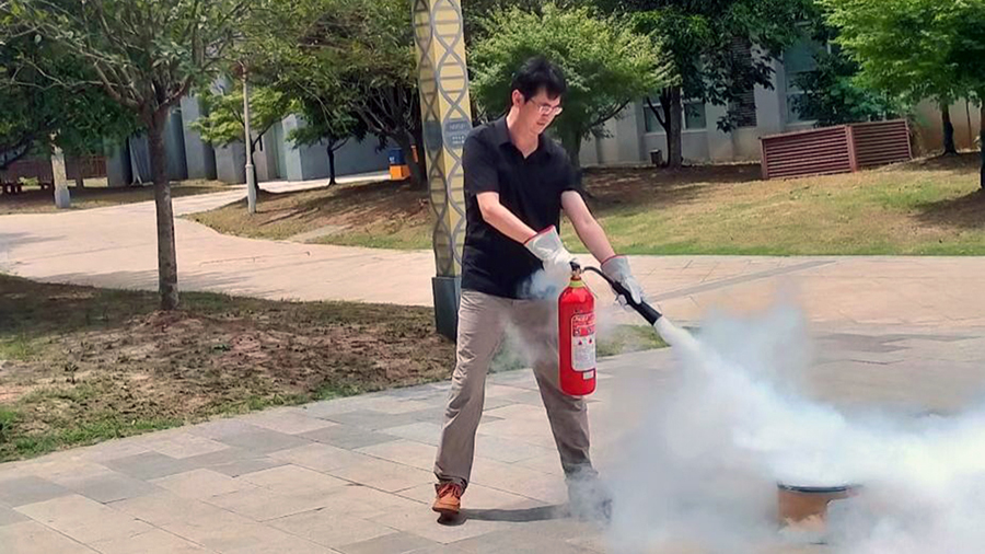 劉妍妍向大家講授了消防相關(guān)知識(shí),并指導(dǎo)大家掌握滅火器的基本使用方法,提高了處置突發(fā)火災(zāi)的能力。