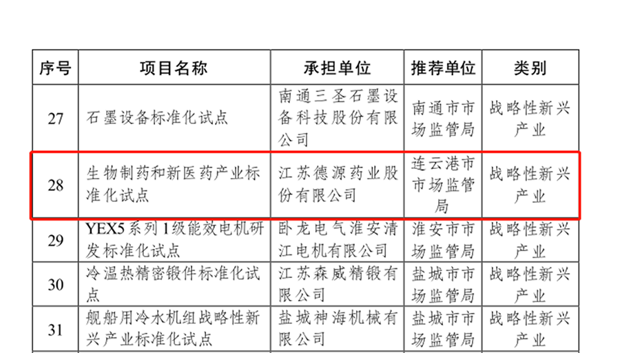 6月22日下午,連云港市市場監(jiān)督管理局標(biāo)準(zhǔn)化處副處長蔣明、連云港市市場監(jiān)督管理局標(biāo)準(zhǔn)化中心陳群主任、開發(fā)區(qū)市場監(jiān)督管理局司偉偉科長等一行到公司參加省級“生物技術(shù)和新醫(yī)藥產(chǎn)業(yè)標(biāo)準(zhǔn)化試點(diǎn)”項(xiàng)目啟動大會,董事長李永安及相關(guān)部門負(fù)責(zé)人參加會議。