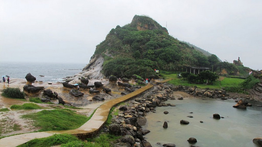 野柳是臺(tái)島東北海岸的著名風(fēng)景區(qū)。太平洋白浪翻滾,為伸出大海的半島鑲上了銀邊。經(jīng)長(zhǎng)時(shí)間的海蝕風(fēng)化和地殼運(yùn)動(dòng),兩面海岸形成了許許多多的海蝕洞溝、蜂窩石、燭狀石、豆腐石、蕈狀巖、壺穴、溶蝕盤(pán)等等特殊的地質(zhì)景觀。最惟妙惟肖的是英國(guó)女王石像與燭臺(tái)石,還有姜石、鞋石等,均讓人把玩不已,流連忘返。