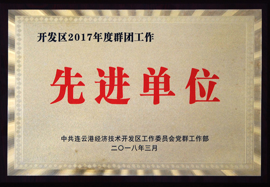 公司榮獲2017年度開發(fā)區(qū)群團工作先進單位