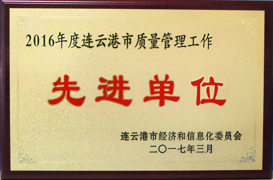 近日,市經(jīng)信委對2016年度連云港市質(zhì)量管理工作表現(xiàn)突出的20個先進(jìn)單位和30名質(zhì)量管理先進(jìn)個人進(jìn)行了表彰,我公司榮獲連云港市質(zhì)量管理先進(jìn)單位榮譽(yù)稱號。