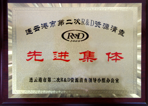 近日,連云港市第二次R&D資源清查領(lǐng)導(dǎo)小組辦公室在各級(jí)清查機(jī)構(gòu)認(rèn)真評(píng)選推薦的基礎(chǔ)上作出決定,授予部分單位為“連云港市第二次R&D資源清查先進(jìn)集體”榮譽(yù)稱號(hào),我公司名列其中;公司財(cái)務(wù)部李歡和研發(fā)部張進(jìn)分別被授予先進(jìn)個(gè)人榮譽(yù)稱號(hào)。