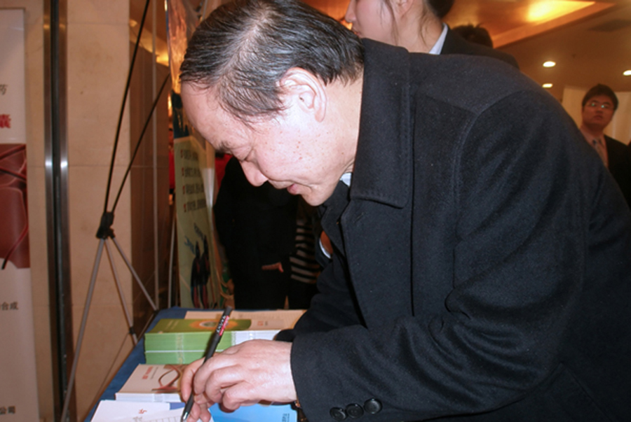 西安交通大學(xué)附屬第一醫(yī)院朱本章教授參觀德源展臺并簽名。